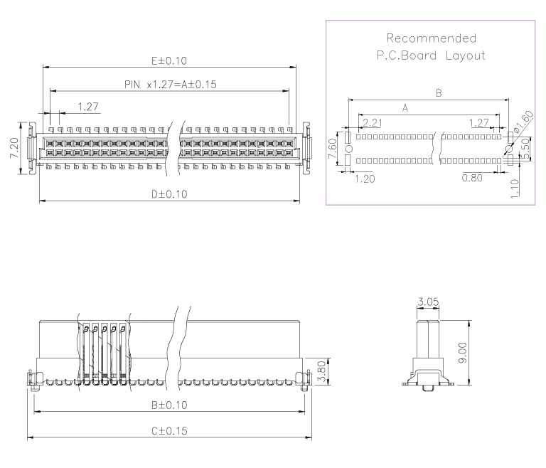 Pitch :1.27 mm / 0.05"Gender :FemaleMount type :S.M.T.Locating peg :With | Up to 8 Gbps