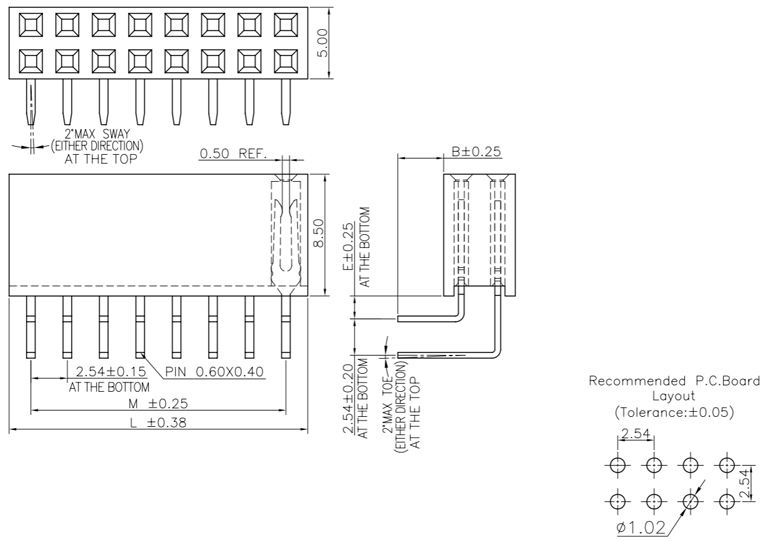 • P/H2.54 Female Header HB201