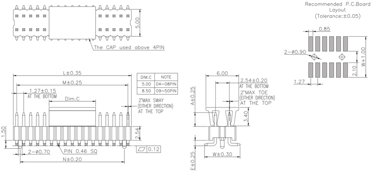 P/H1.0 mm 貼片排針 CC101