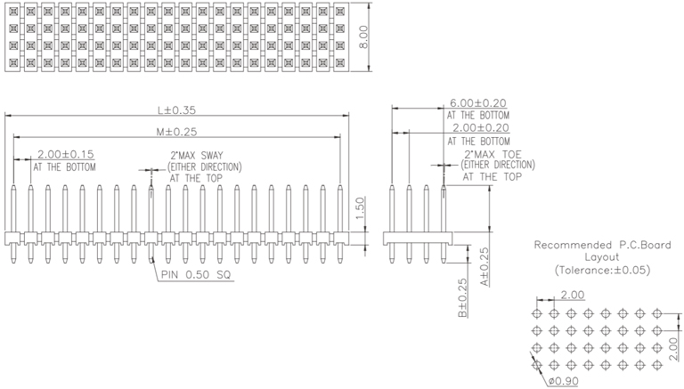 P/H2.0mm 四排排針 FA401