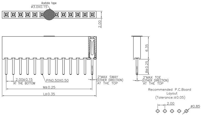 P/H2.0mm 單排排母 FA104
