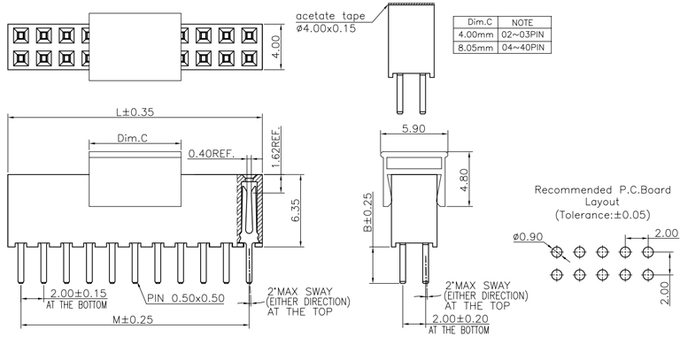 P/H1.0mm 雙排排母 CC211