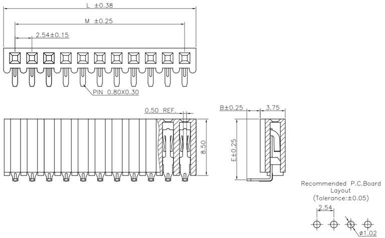 P/H2.54mm 單排排母 HB107