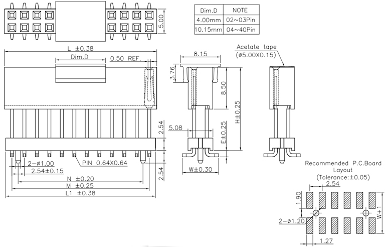 絕緣材料:PBT,尼龍,LCP,UL 94V-0